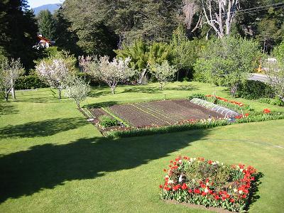 Rodeada por un terreno parquizado de media hectárea de superficie, cuenta con una variedad de árboles frutales,